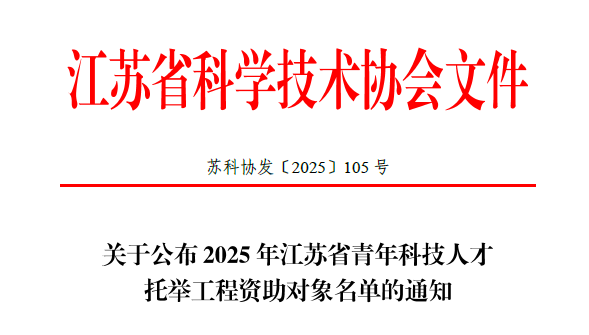 江苏省青年科技人才托举工程是由江苏省科学技术协会组织实施的人才项目,旨在深入学习贯彻习近平新时代中国特色社会主义思想,落实中央和省委人才工作会议精神,充分发挥科协组织对青年科技人才的培育作用,联合青年科技工作者所在单位,在全省范围内选拔和培养一批崭露头角、具有较强创新潜力的优秀青年科技人才,支持他们在创造力“黄金期”潜心研究、深入探索,尽快成长为高层次科技创新人才的储备力量。