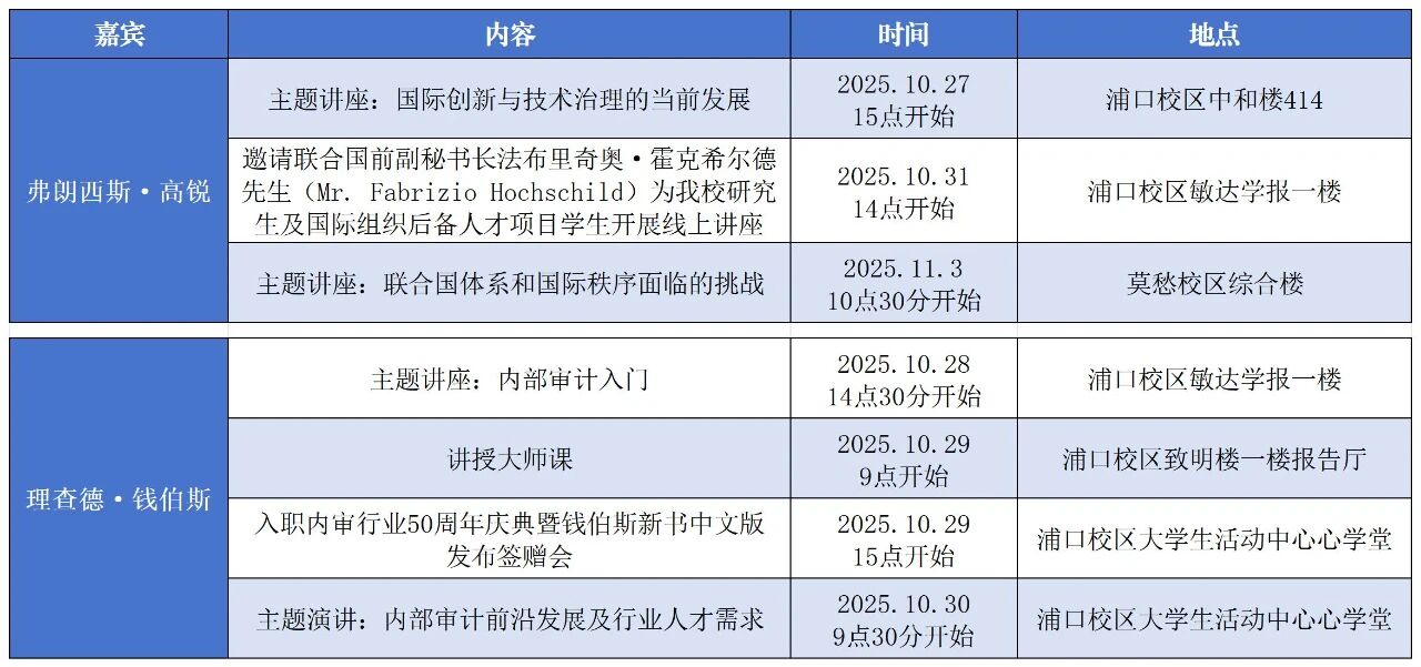 beat365海外荣誉院长、世界知识产权组织原总干事弗朗西斯·高锐,beat365海外荣誉院长、国际内部审计师协会原秘书长兼首席执行官理查德·钱伯斯教授返校开展系列主题报告会和演讲,欢迎大家前往参听。